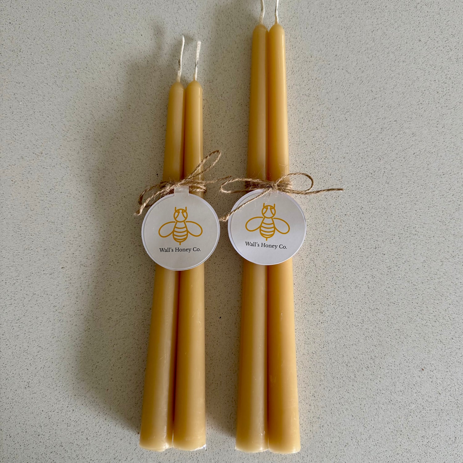 Hand crafted with care by our family in regional NSW, these exquisite taper candles are made from 100% pure beeswax harvested directly from our very own bee hives. Each candle features a natural cotton wick, ensuring a clean and steady burn.
