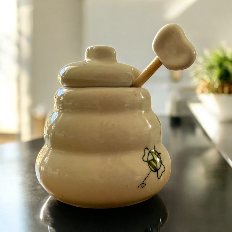 Paired with a natural wooden honey dipper, it’s perfect for drizzling golden honey over warm toast, fresh fruit, or into a steaming cup of tea. Whether you're treating yourself or searching for a thoughtful gift, this honey pot is a delightful choice—elegant, functional, and irresistibly sweet.