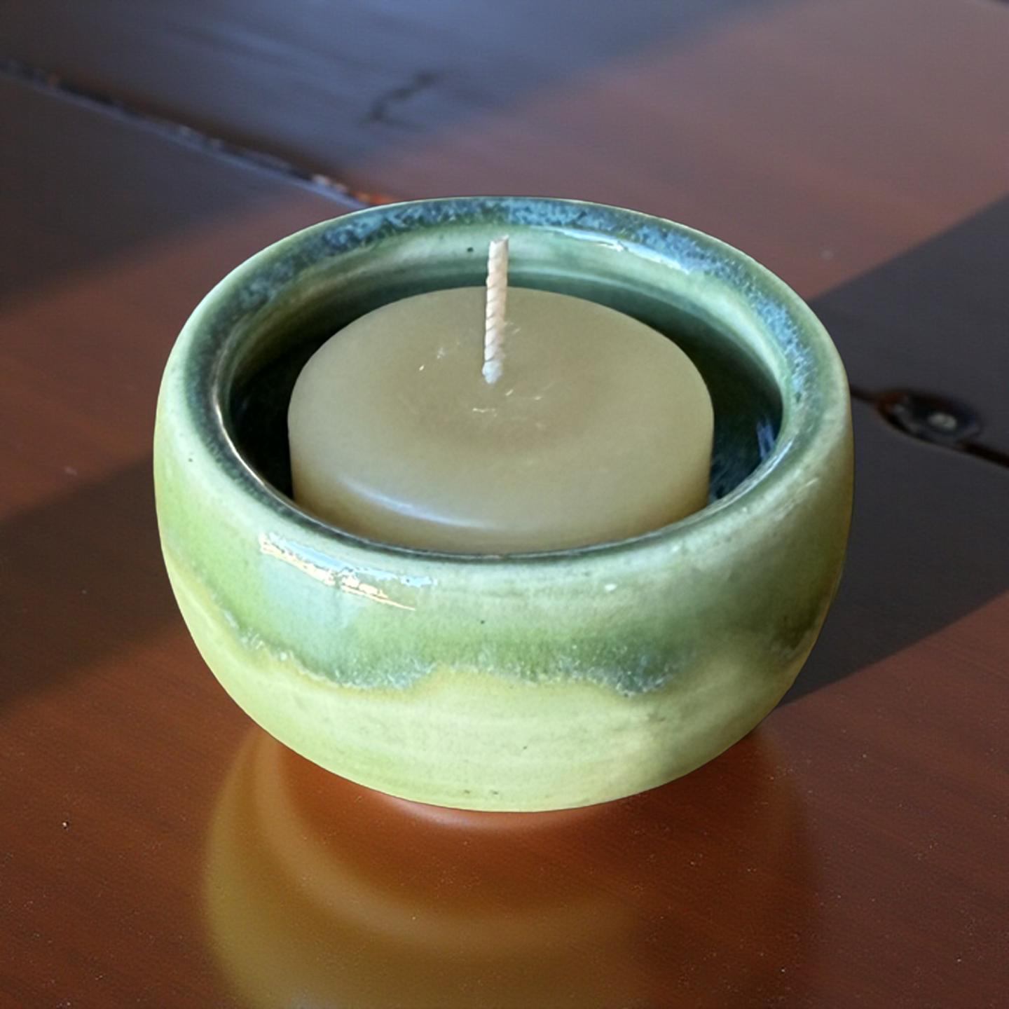 “Jade” Pottery Tall Tea Light Beeswax Candle Holder and Pack of 6 candles