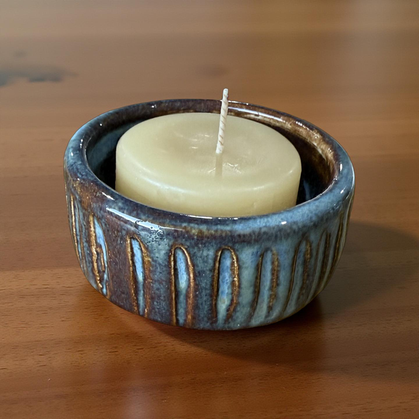 “Seraphine” Pottery Tall Tea Light Beeswax Candle Holder and Pack of 6 candles