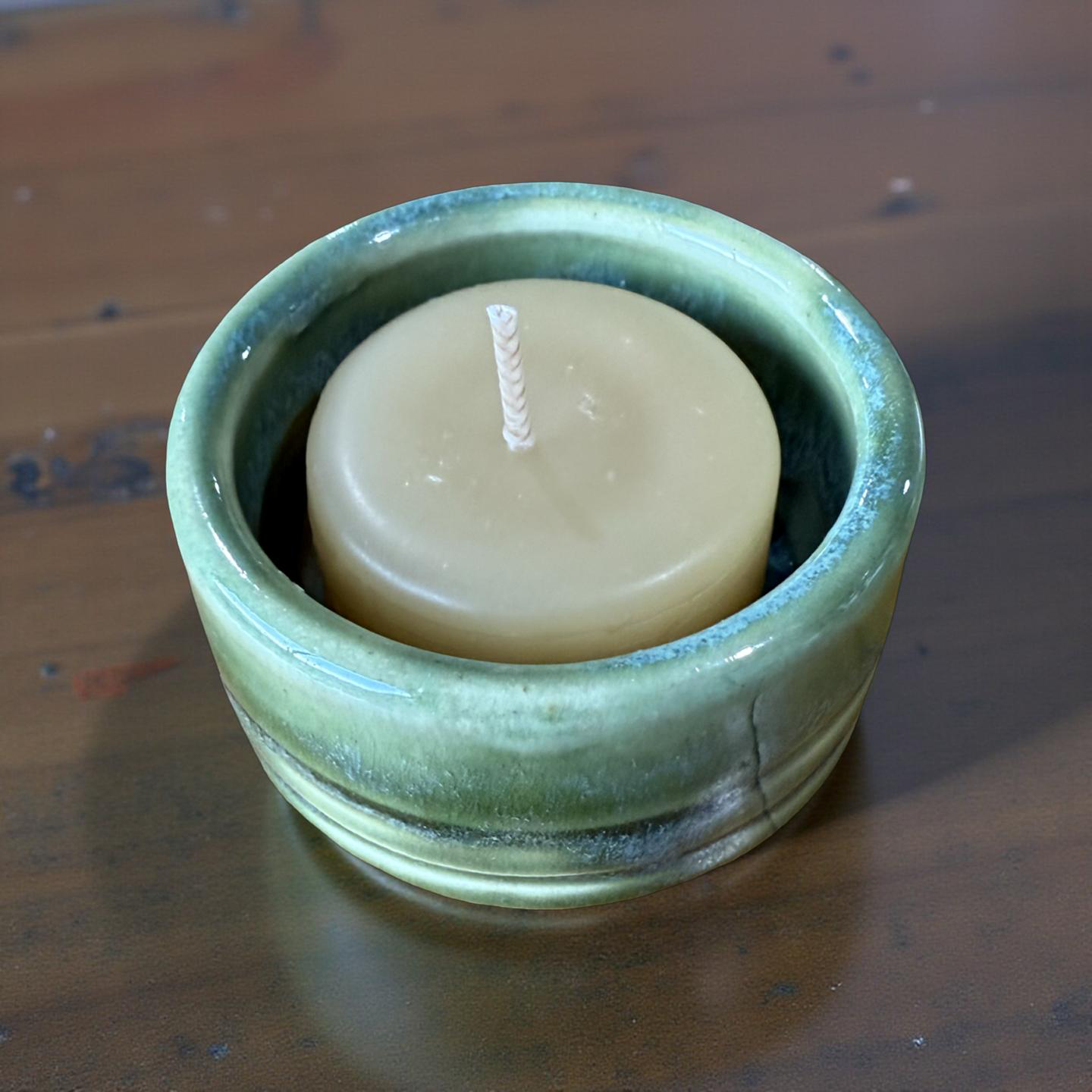 “Theodora” Pottery Tall Tea Light Beeswax Candle Holder and Pack of 6 candles